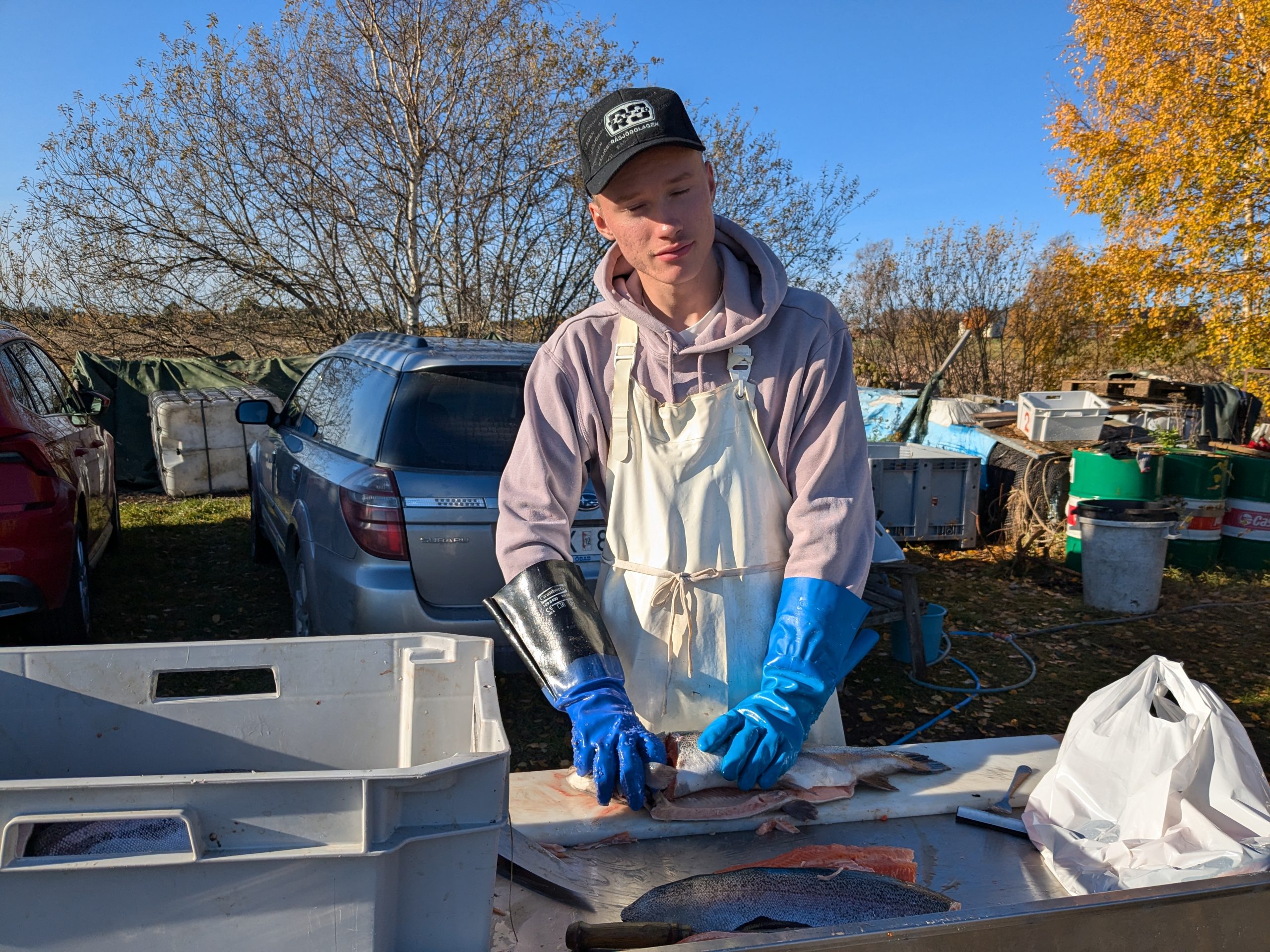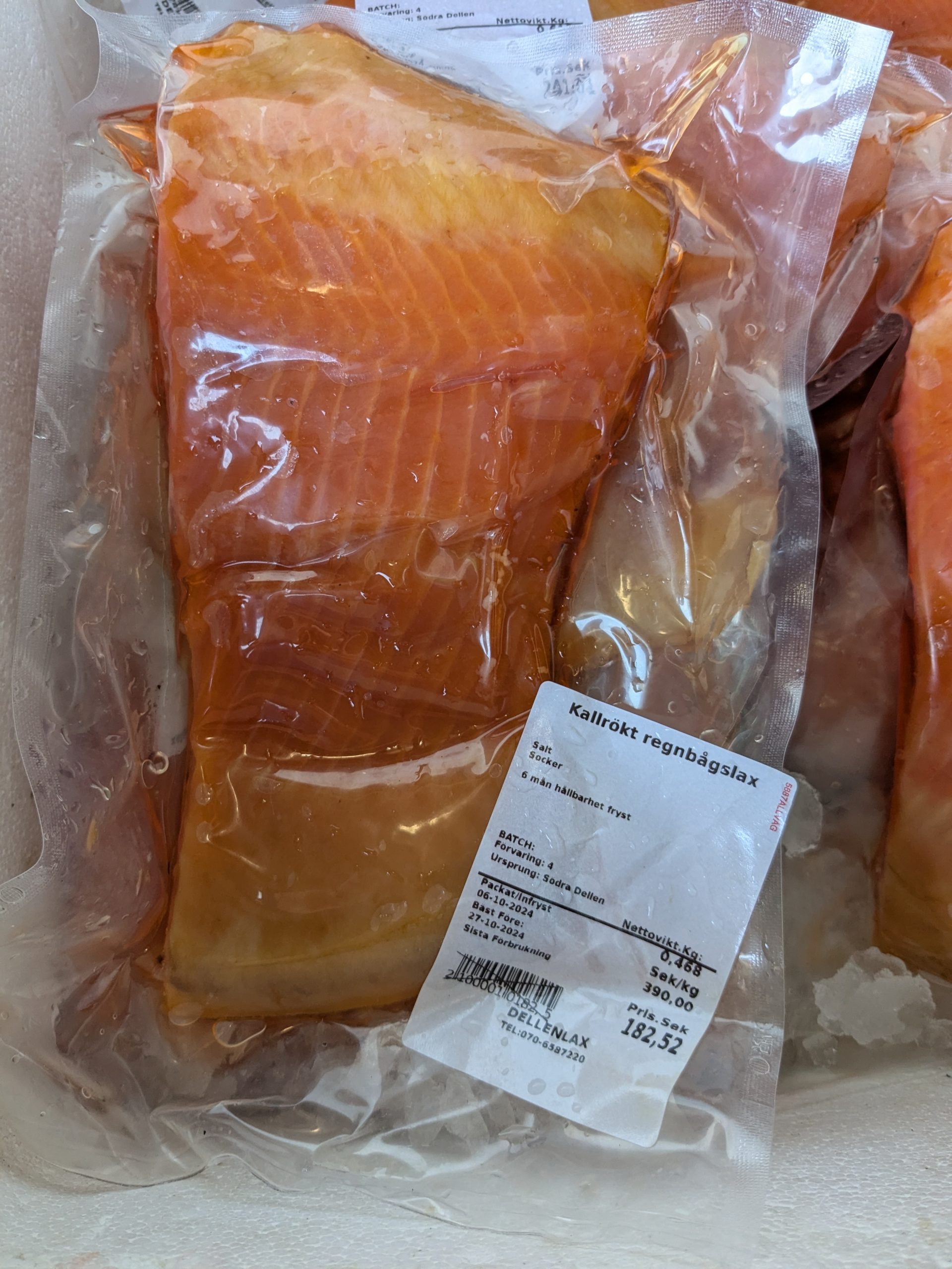 Under åtta helger på hösten säljer vi färsk regnbågslax direkt vid brygga. Om ni önskar så filear vi fisken på plats, utan extra kostnad.